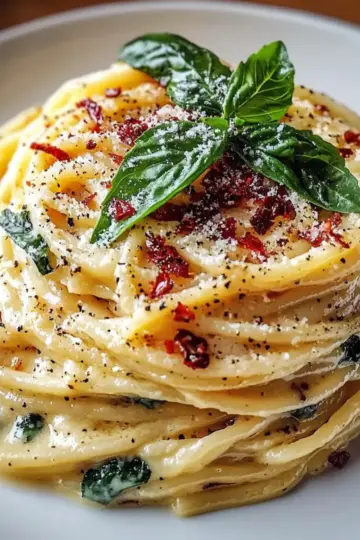 Creamy Spaghetti & Spinach with Sun-Dried Tomato Delight